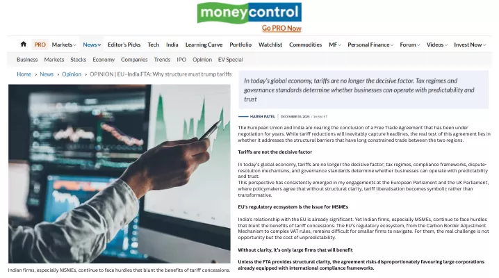 Harsh Patel at European Parliament: FTA Must Empower SMEs, Not Just Cut Tariffs