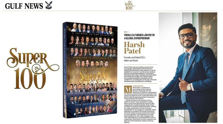 Harsh Patel, Founder & Global CEO of Water & Shark, has been featured as a Global Visionary in UAE Achievers, a Gulf News report.