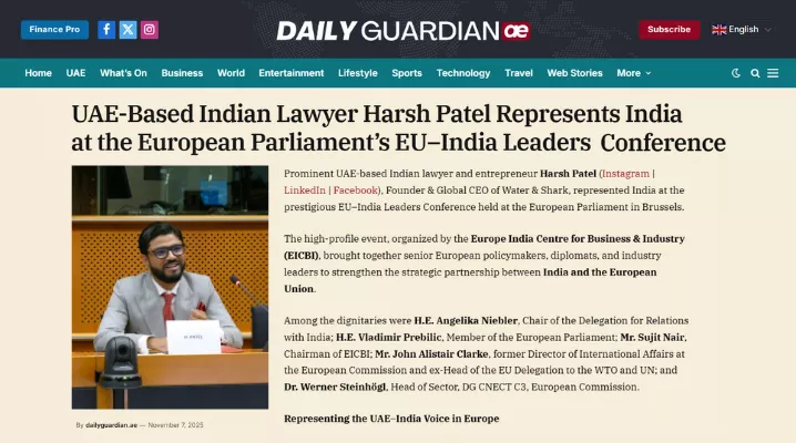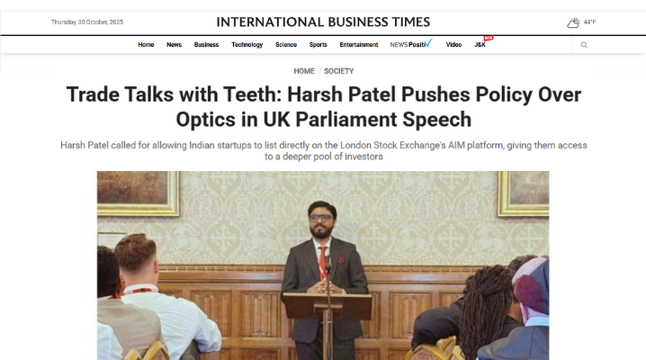 Harsh Patel, Founder & Global CEO of Water & Shark, was quoted in International Business Times following his keynote at the UK Parliament’s India–UK SME Leaders Meeting. He emphasized that trade agreements must prioritize SME founders—the true builders of national economies—over mere deal-making. Citing proposals like SME-friendly capital mobility, direct UK listings for Indian startups, a...
