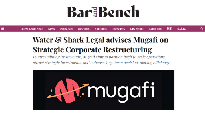 Water & Shark Legal has advised Mugafi Private Limited—a next-generation entertainment company and AI story generator—on a strategic corporate restructuring to strengthen its corporate and governance framework. The streamlined structure is intended to support Mugafi’s growth trajectory, scale operations, attract strategic investment, and enhance long-term decision-making as the company expan...