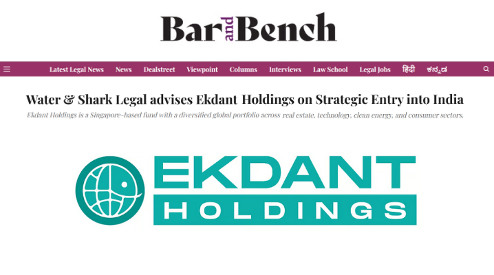 Water & Shark Legal has advised Ekdant Holdings, a Singapore-based fund manager with a diversified global portfolio spanning real estate, technology, clean energy, and consumer sectors, on its strategic entry into India.