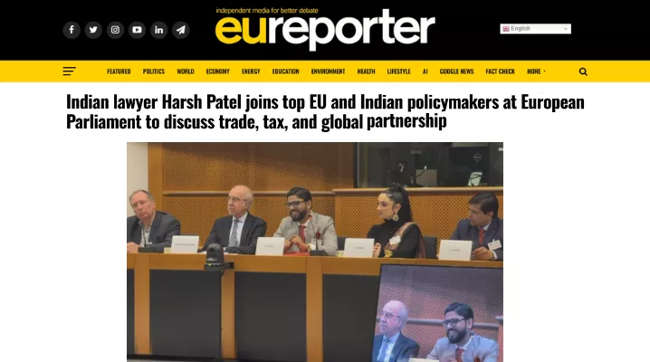 Our Founder and Global CEO Harsh Patel joins top EU and Indian policymakers at European Parliament to discuss trade, tax, and global partnership